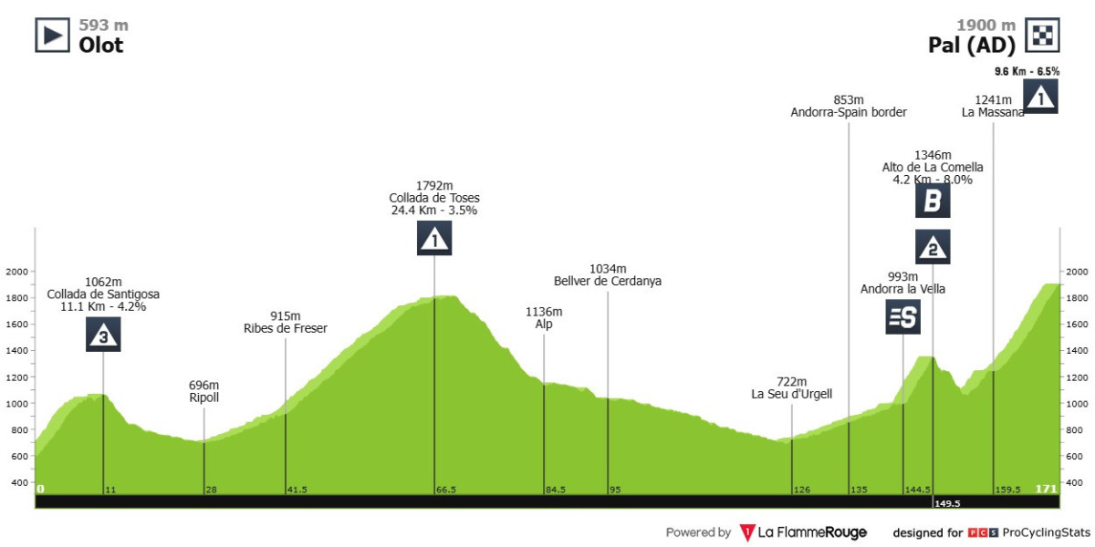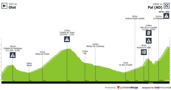 Een hele dag klimmen, maar pas op 30 kilometer van de meet liggen klimmetjes waar verschil gemaakt kan worden. Een mooie dag voor de vlucht, of gaan de klassementsmannen voor de winst in Andorra?